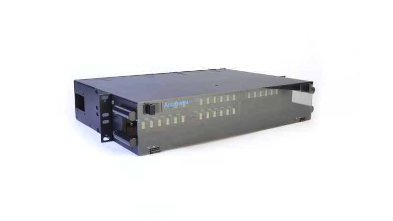Amphenol的2RU機架安裝配線架旨在將修補和拼接結合在同一機箱內。可在19或23個機柜中使用安裝架,前后均帶有理線器,并且可容納6至72根光纖,并帶有可選的無需工具的轉接板。2RU機架安裝配線架完全圍住了引線(通常在單獨的配線架之間布線),從而提供了更好的保護和更短的線長度。